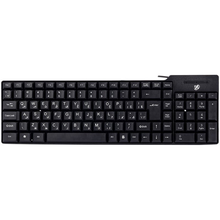 نوع رابط: USB نوع اتصال: با سیم جنس بدنه: پلاستیک طول کابل: 1.2 متر حروف فارسی: دارد روکش کابل: پلاستیک پایه تنظیم ارتفاع: دارد میزان ضربه پذیری کلید ها :حدود 10 میلیون بار کلیک