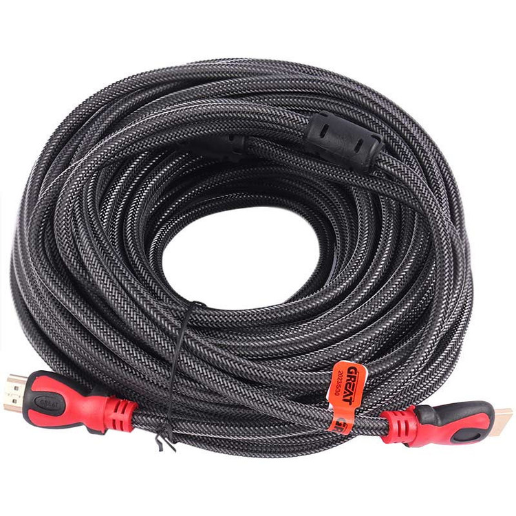کابل اچ دی ام آی گریت به طول 20 متر از بهترین گزینه های ممکن است. این کابل با کیفیت دارای روکش از جنس الیاف به هم بافته شده، مقاوم در برابر کشش، پارگی و خمیدگی می باشد. این کابل به طول 20 متر، مناسب برای اتصال به تلویزیون، کامپیوتر و … می باشد. وجود دو عدد نویزگیر در امتداد کابل جهت دریافت تصویر با کیفیت بالا از برتری های این کابل است گه آنرا متمایز کرده است. همچنین این کابل مجهز به کانکتورهای فلزی از نوع HDMI و مقاوم در برابر فشار و سایش بالا است. کیفیت تصویر قابل پشتیبانی برابر با Full HD (1080 پیکسل) می باشد که در نوع خود بی نظیر است.
