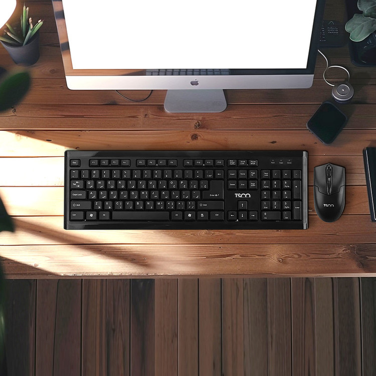 کیبورد و ماوس تسکو مدل TKM 8050، یک ست اداری-خانگی فولسایز است که برای استفادههای عمومی طراحی شده است. این کیبورد با ابعاد ۱۴۶ در ۲۸ در ۴۵۷ میلیمتر و وزن ۷۲ گرم، دارای بدنهای از جنس پلاستیک بوده و با سوییچهای ممبران عملکردی نرم و بیصدا ارائه میدهد. حروف فارسی روی کلیدها حک شدهاند که امکان تایپ راحت به زبان فارسی را فراهم میکند. همچنین، ۱۰۴ کلید به همراه ۱۲ کلید میانبر برای کنترل عملکردهای مهم مانند تنظیم صدا و پخش و توقف رسانه در این کیبورد تعبیه شدهاند. قابلیتهای اضافی مانند پایههای ضد لغزش، نصب آسان از طریق اتصال Plug & Play و سازگاری با سیستمعاملهای Windows XP تا Windows 8، از ویژگیهای بارز آن است. ماوس این ست، با ابعاد ۱۰۴ در ۶۳ در ۳۷ میلیمتر و وزن ۸۴ گرم، مجهز به حسگر اپتیکال با دقت تنظیمی بین ۱۶۰۰ تا ۳۲۰۰ است. علاوه بر این، ماوس قابلیت کارکرد در دو دقت ۱۰۰۰ و ۱۶۰۰ را داراست. هر دو دستگاه با رنگ مشکی هماهنگ شده و از طریق پورت USB با کابل پلاستیکی ۱۸۰ سانتیمتری به سیستم متصل میشوند.