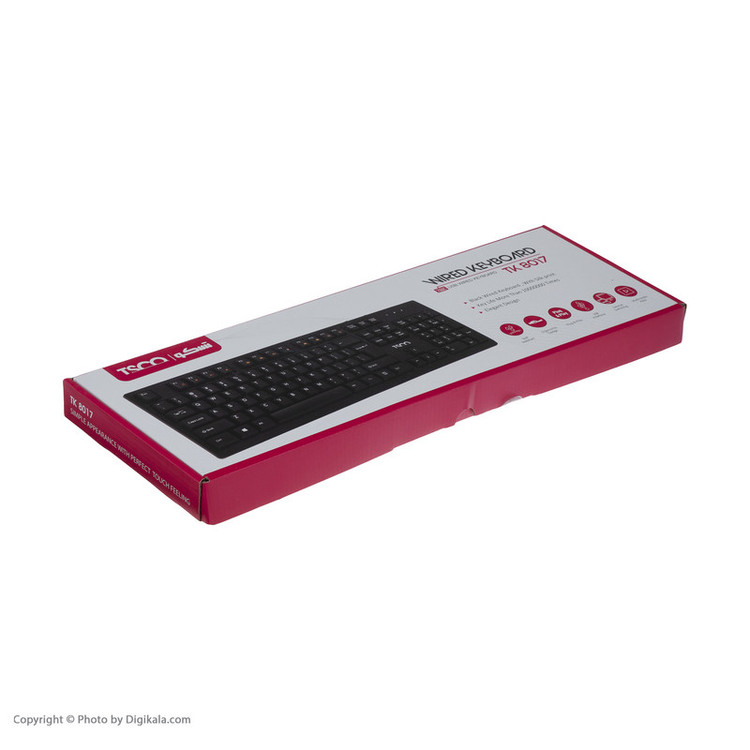 در صورتی که برای کار خود به استفاده ی مکرر از کامپیوتر نیاز داشته باشید، اهمیت در اختیار داشتن یک کیبورد مناسب را بهتر از هر کسی درک خواهید کرد .کیبورد تسکو مدل TK 8017 به گونه ای است که دست بر روی آن نمیلغزد و می توانید با تسلط کامل کار خود را انجام دهید. همچنین برای جلوگیری از لغزش، در پشت این محصول تکه هایی لاستیکی قرار داده شده است تا بتواند از لغزش آن جلوگیری کند. اتصال در این کیبورد از طریق یک کابل با رابط USB و به طول 180 سانتیمتر صورت می گیرد که در حالت معمول استفاده، میزان مناسبی به حساب می آید. 104 کلید روی این کیبورد TK 8017 وجود دارد که با احتساب کلیدهای چند رسانه ای برای کنترل پخش موسیقی و حجم صدای کامپیوتر قابلیت های این صفحه کلید چند برابر می شود.