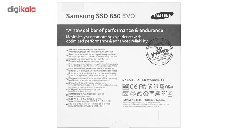 اس اس دی «850 Evo» محصولی از برند کرهای «سامسونگ» (Samsung) است. این اس اس دی در فرم فاکتور 2.5 اینچی تولید شده و در کامپیوترهای دسکتاپ و لپتاپها قابل استفاده است. در اس اس دی 850 Evo از حافظههای فلش V-NAND استفاده شده و همین موضوع، کیفیت و سرعت عملکرد محصول را تا حد زیادی افزایش دادهاست. در 850 Evo شاهد سرعت نوشتن ترتیبی بالایی هستیم و حداکثر سرعت 520 مگابایت بر ثانیه با استفاده از آن حاصل خواهد شد. چنین سرعتی با استفاده از فناوری TurboWrite سامسونگ به دست آمده و حداکثر سرعت اس اس دی در خواندن اطلاعات را به 540 مگابایت بر ثانیه رساندهاست. سامسونگ با استفاده از فناوری دیگری که حالت سریع (RAPID Mode) نام دارد، سعی کرده تا سرعت اس اس دی 850 Evo را باز هم افزایش دهد. در این فناوری با استفاده از رم کامپیوتر به عنوان حافظهی کش (Cache) سرعت کامپیوتر تا 2 برابر افزایش پیدا میکند و کاربر شاهد عملکرد سریعتری از کامپیوتر خواهد بود. عمر زیاد و قابل اطمینان بودن 850 Evo را به یک حافظهی محبوب در میان کاربران تبدیل کردهاست. با استفاده از این محصول میتوانید عمر مفیدی از 75 تا 300 ترابایت را بسته به ظرفیت انتخابیتان به دست آورید. این عدد، نشاندهندهی عمر مفید اس اس دی است و بهترین سطح عملکرد 850 Evo را نشان میدهد. بهکارگیری تکنولوژی رمزگذاری در سطح سختافزاری، امنیت دادههای شما در 850 Evo را تضمین میکنند. این اس ای دی از سیستم رمزگذاری 256 بیتی AES استفاده میکند و قادر است بدون تاثیر منفی در سرعت کامپیوتر، از اطلاعات در برابر دسترسیهای ناخواسته حفاظت کند. حافظه 850 Evo سامسونگ در ظرفیتهای گوناگونی تولید شده و میتوان آن را از 120 گیگابایت تا 4 ترابایت تهیه کرد. سامسونگ این محصول را برای انجام دادن کارهای روزانهای که در کامپیوترهای امروزی انجام میشوند، بهینه کرده و توانسته با تولید محصولی با سرعت خوب و ماندگاری زیاد، آن را به پرفروشترین حافظهی کامپیوتر در سطح جهانی تبدیل کند.